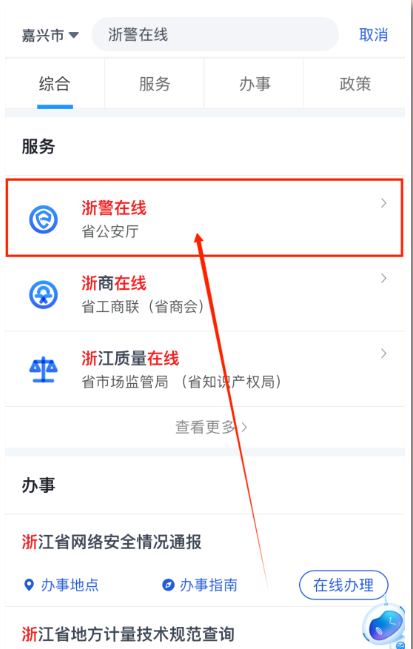 3.选择“浙警在线“服务。