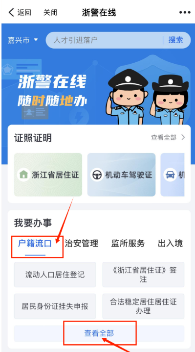 4. 选择“户籍流口”,并点击查看全部。