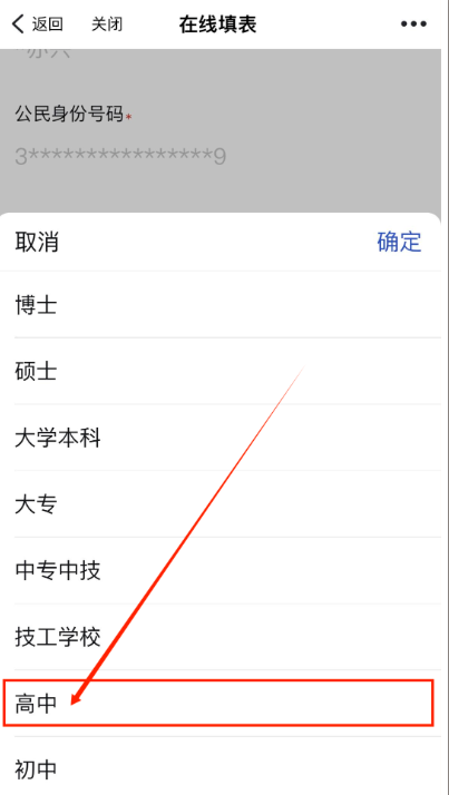 8. 下拉,选择“变更后文化程度”,并根据取得的毕业证书,选择相应的文化程度。