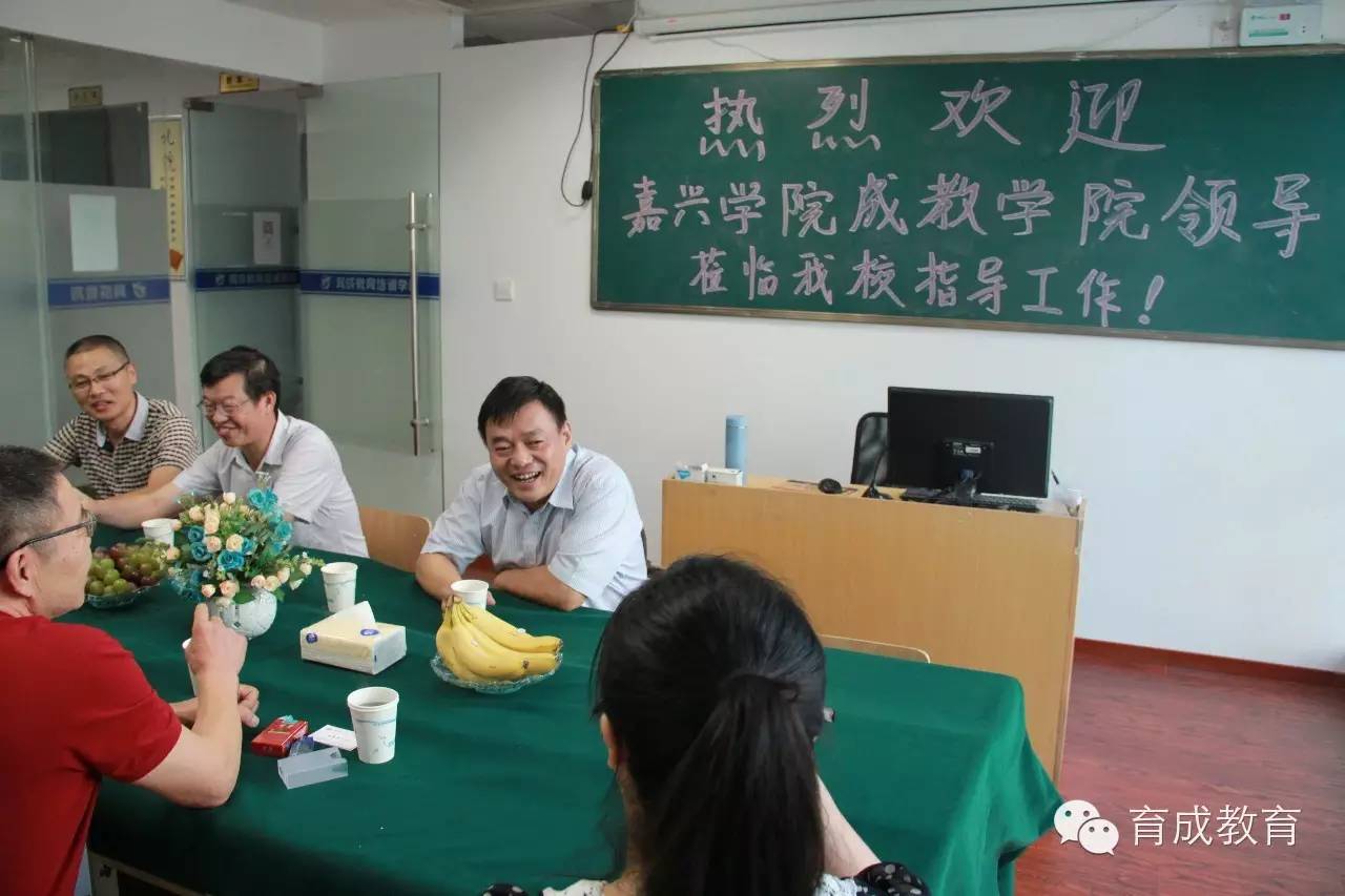 2015年8月17日,嘉兴学院成教学院院长潘泽谷、副院长凤元杰、主任袁亚云一行莅临我校指导工作。我校校长彭佳志、王传定、主任林清燕以及教务史仁娜老师、刘倩倩老师等在学校总部会议室一起与嘉院成教领导进行交流。