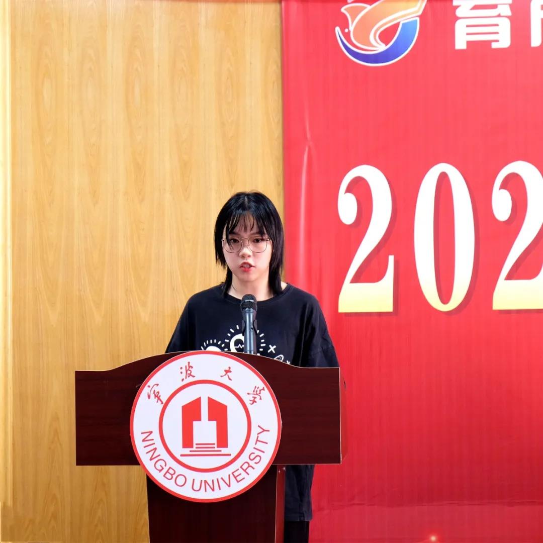 2019专升本工商管理班班长项盼幸与2021专升本汉语言文学班陈思怡分别代表全体老生和全体新生在会上发言。