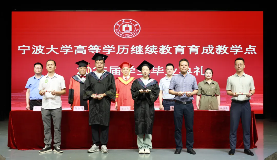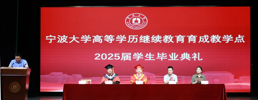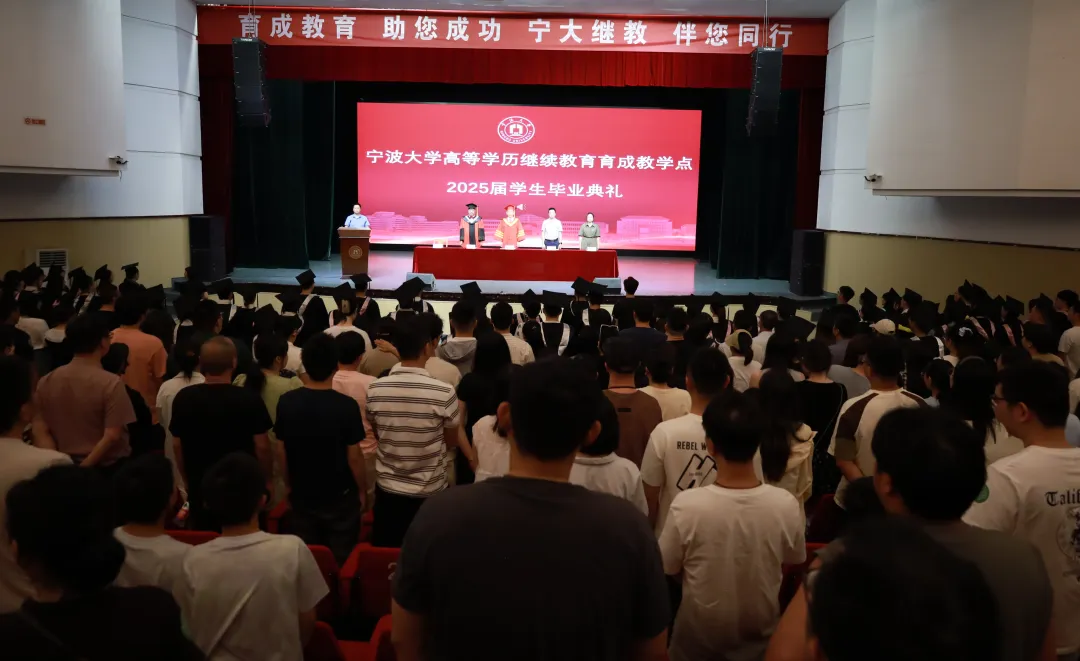 7月6日,宁波大学高等学历继续教育育成教学点2025届毕业典礼暨学位授予仪式在林杏琴会堂隆重举行。