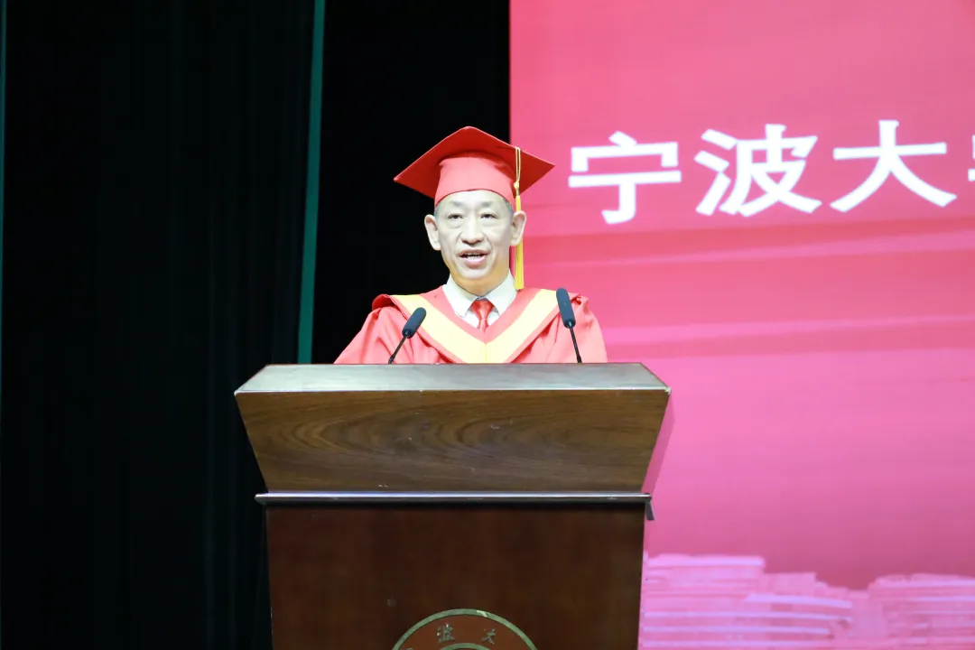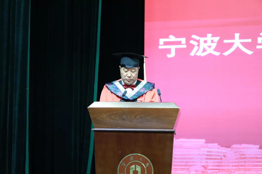 蔡真亮院长代表学校向2025届全体毕业生致以最诚挚的祝贺和最美好的祝愿,并对同学们寄予三点期望:一是希望同学们能够坚定理想信念,做终身学习的践行者。二是希望同学们能够秉持实事求是、经世致用的校训,做一个合格的祖国建设者。三是希望同学们能始终常怀感恩反哺之心。字里行间既表达了宁波大学对各位毕业生的深切期望,也为毕业生送上了美好的祝愿。